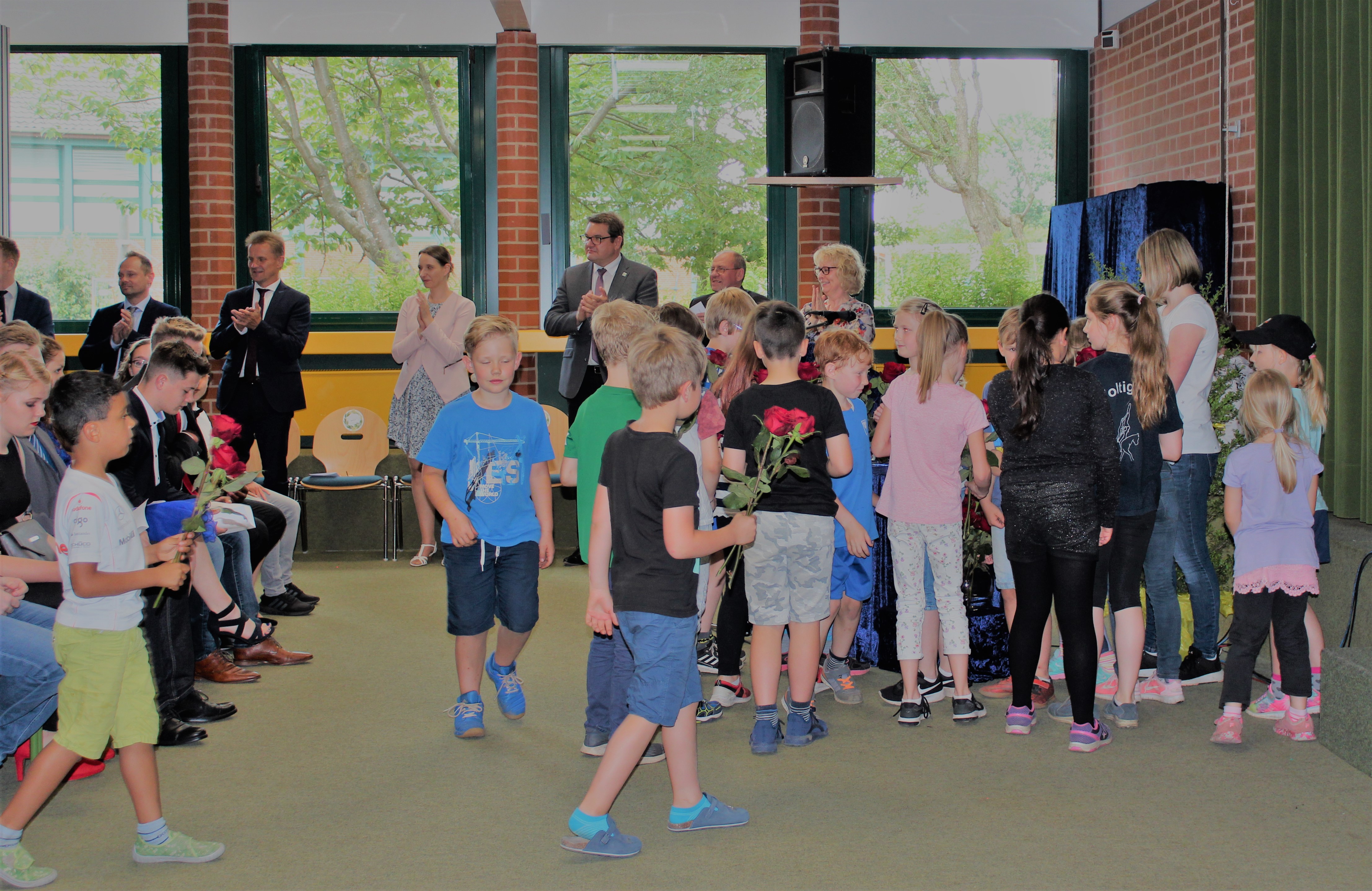 Hineingeführt und mit großem Applaus begleitet, wurden die Absolventinnen und Absolventen von den Schülerinnen und Schülern der Grundschule. Denn dies ist das Besondere an der Grund-und Oberschule Oldendorf, dass hier Schülerinnen und Schüler von der 1. bis zur 10. Klasse begleitet werden.
