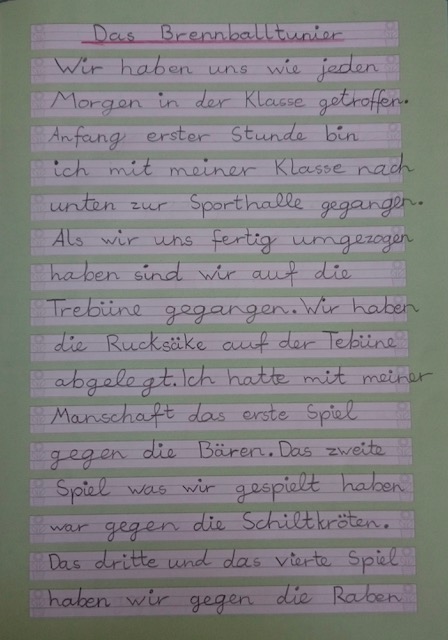 Als schulische Veranstaltungen gab es die Brennballturniere, ein Fußballturnier und die Bundesjugendspiele der Grundschule.
